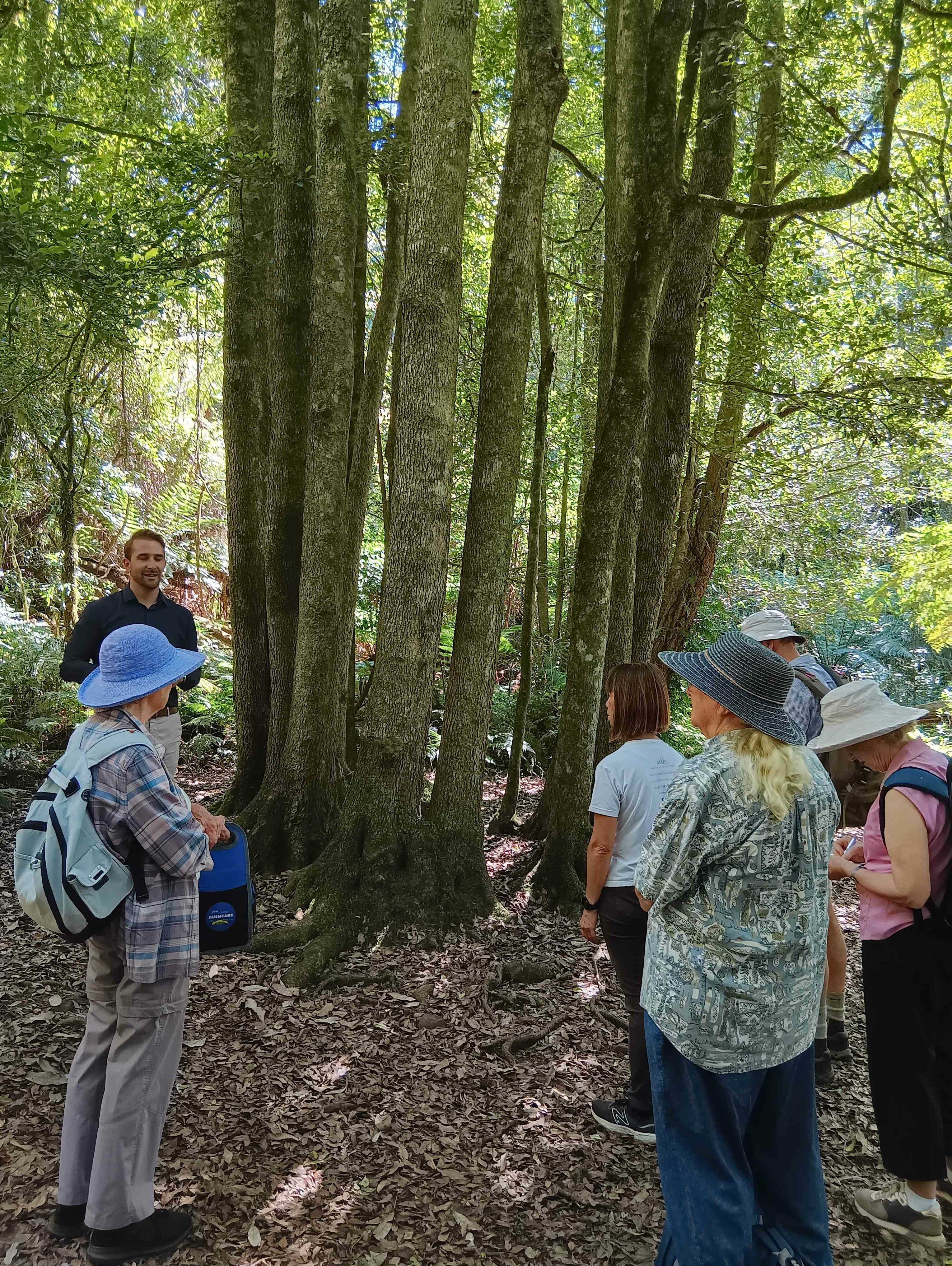 It was a delight to see orchid leaves emerging beside the track. We ate our lunch sitting on a log, surrounded by a splendid diversity of plants and then returned back along the track